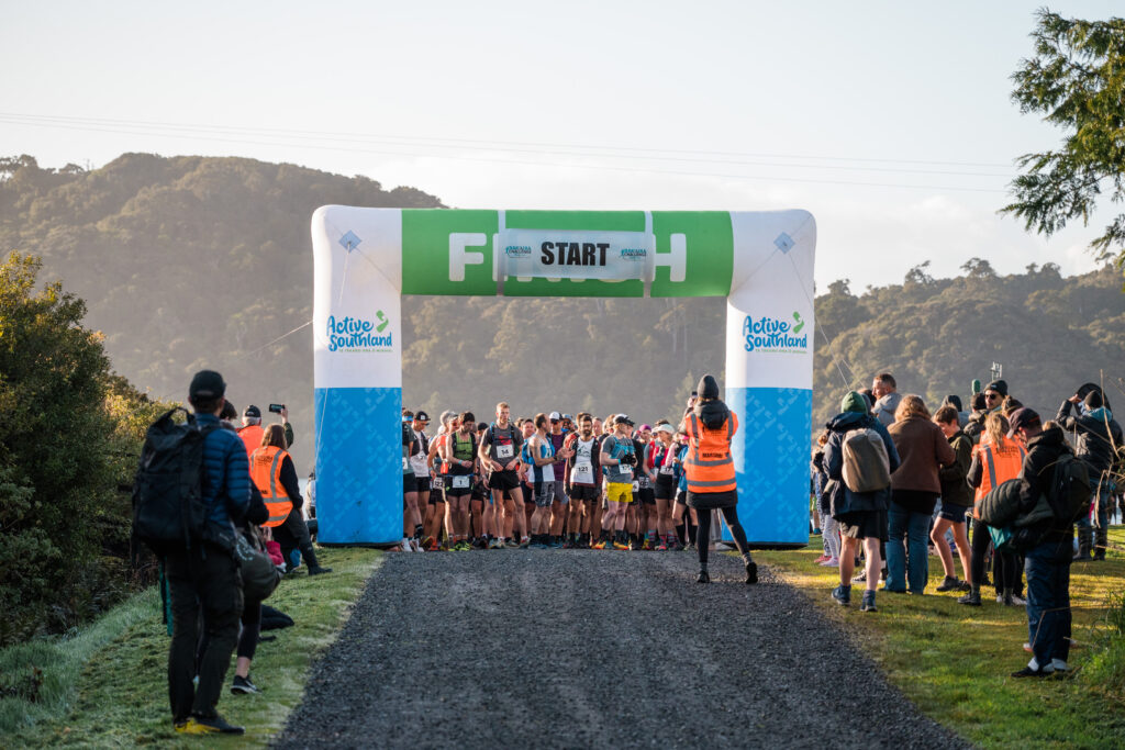 There are loads of familiar faces here, a strong Southland attendance. Everyone lines up for their bibs and preps for the start. It’s a simple affair. 250 runners, one start, one race distance. And much like the Kepler, there are few opportunities to meet and cheers the runners along the course. Things are underway quickly. I shout words of encouragement to our lads as they speed off out of the gate and along the gravel road. They know there is an incline just 400m in and around that first blind corner. That’ll spread the field out.